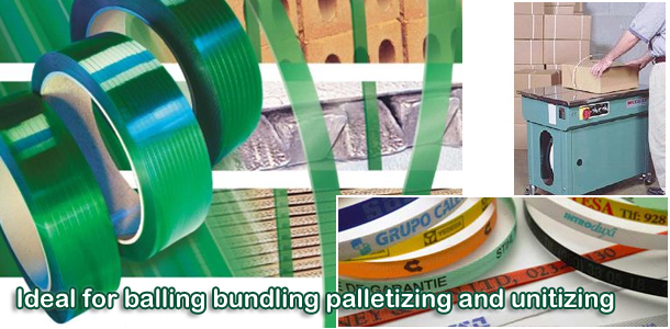 Tenax polyester strapping is designed for medium to heavy-duty palletizing and unitizing applications and can be applied by hand tools or power strapping equipment. This strapping material yields higher break strengths and maintains a higher level of retained strap tension than polypropylene strapping.